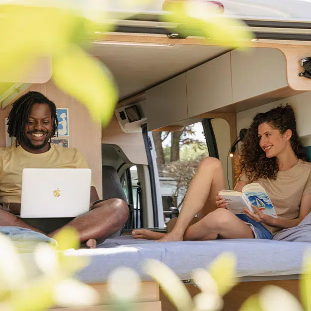 Partout en Europe, retrouvez le plus petit des fourgons aménagés. Il vous assure de bonnes vacances mais aussi un vrai plaisir de conduite. A vous la garantie des derniers équipements de sécurité avec le châssis Fiat Ducato : airbag conducteur et passager, régulateur et limiteur de vitesse, ABS - antiblocage des roues au freinage, rétroviseurs électriques dégivrant avec 2 miroirs grands angles et angle mort, ESP, verrouillage centralisé et vitres avant électriques. Bonne route !