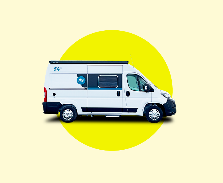 Le JOA 54G est le fourgon aménagé le plus petit de la collection. Avec ses 5,41 mètres de long, il se faufile partout. Il bénéficie d'un aménagement intérieur astucieux, qui ravira les personnes voyageant seules et/ou à deux. Un lit de 133 cm de large, surplombant une large soute. Une salle d'eau 3 en 1 conçue sans rideau de douche. Un salon bénéficiant d'une table à rallonge et de sièges de cabine pivotant. Afin de vous préparer de bon petits plats, le 54G dispose d'une cuisine tout équipée, avec plaque double feux gaz à allumage piezzo, frigo à compression de 85L. Tout ce qu'il vous faut pour voyager léger où vous voulez !